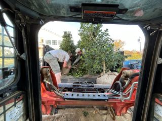 Around the perimeter, we cut clean new beds and planted a mix of evergreens and ornamentals to frame the building and create privacy where it mattered. The plantings included about a dozen trees and several large shrubs - American holly, hornbeam, and southern magnolia - along with five ten-foot arborvitae near the parking lot to soften the approach.