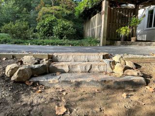By the time we were done, the client had exactly what they asked for: a simple, striking, natural-stone step that looks like it belongs there — because we built it like it was always meant to be.